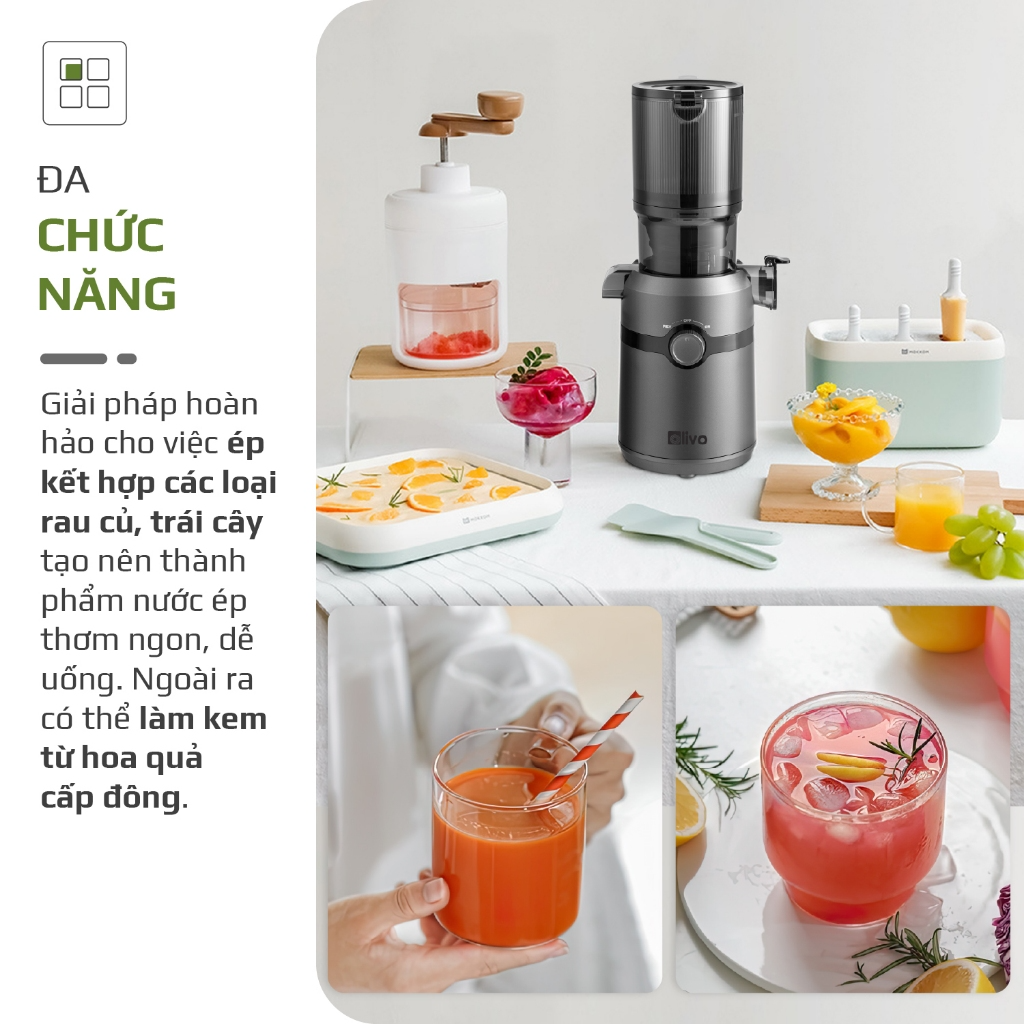 – Thoải mái sáng tạo những ly nước ép thơm ngon, đầy dinh dưỡng cho bản thân và gia đình với OLIVO SJ240.