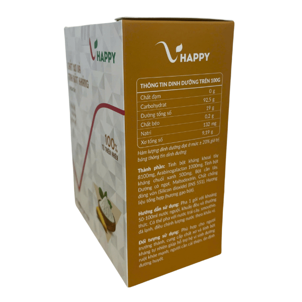 Chất Xơ Và Tinh Bột Kháng VHappy là giải pháp bổ sung chất xơ thế hệ mới với công thức phối hợp tinh bột kháng và Arabinogalactan giúp nuôi lợi khuẩn đường ruột một cách bền vững và an toàn Sản phẩm không chỉ hỗ trợ tiêu hóa mà còn tác động tích cực đến chuyển hóa đường huyết lipid máu và hệ miễn dịch Nhờ hương vị dễ uống và khả năng dung nạp tốt sản phẩm phù hợp sử dụng hằng ngày cho người trưởng thành theo xu hướng chăm sóc sức khỏe chủ động và phòng bệnh lâu dài.
